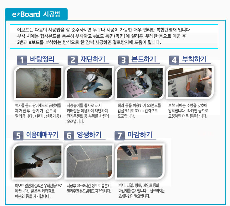 e*보드 커팅부분에 도배할 경우에는 실리콘을 얇게 바른후 도배하면 좋습니다.